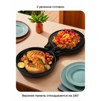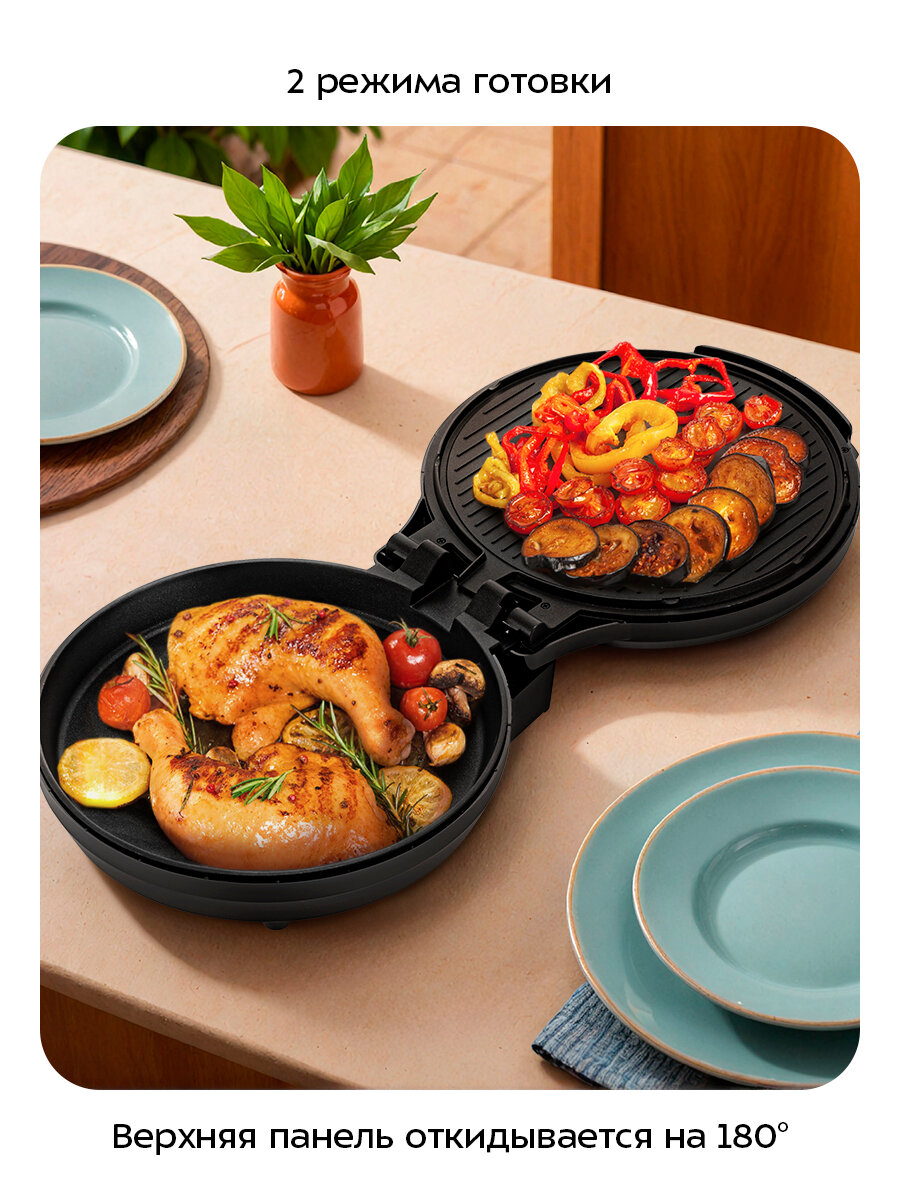 Для уютных домашних посиделок! Пиццамейкер KT-4646 идеально подходит для приготовления пиццы, различных пирогов, сырников, горячих бутербродов и запеканок. Также в пиццамейкере можно готовить омлет, запеченные овощи, котлеты, мясо, рыбу и многое другое. Готовьте в 2 раза больше еды! Конструкция пиццамейкера позволяет готовить в двух режимах: двустороннем и одностороннем. В двухстороннем режиме прибор закрывается крышкой. В одностороннем режиме верхняя панель откидывается на 180°, и пиццамейкер превращается в большую жаровню. Быстрый и равномерный нагрев За счёт небольшого пространства между панелями и нагревательных элементов в обеих панелях нагрев происходит быстро и равномерно. Блюда не пригорают снизу или сверху и хорошо пропекаются внутри. Пицца получается сочной со слегка хрустящей корочкой. Готовьте без лишнего жира! Антипригарное покрытие помогает не прилипать тесту и другим продуктам в процессе приготовления и позволяет готовить без масла. Также антипригарное покрытие панелей облегчает чистку, что особенно важно, так как панели являются несъёмными.