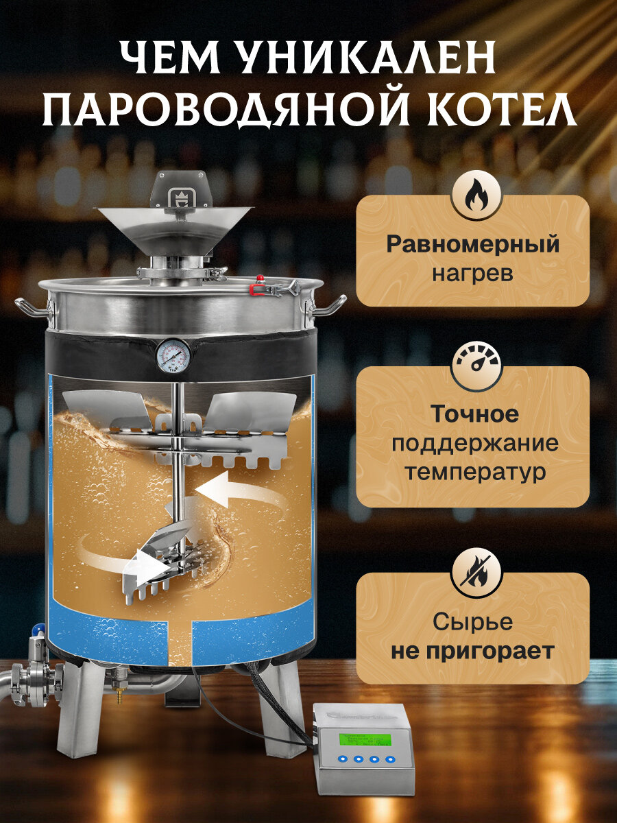 Пивоварня с пароводяным котлом станет отличным подарком на Новый год, День рождения, 8 марта, 23 февраля папе, брату, мужу, для мужчин и женщин, которые ценят натуральные напитки. Наша бытовая техника для кухни – лидер среди агрегатов для пивоварения Хмельница Brugge Beer Zavodik Drinkit Алковар iBrew Бавария Волковская. Также достойно конкурирует с самогонными аппаратами 20 литров двойной перегонки, дистилляторами 30 литров.