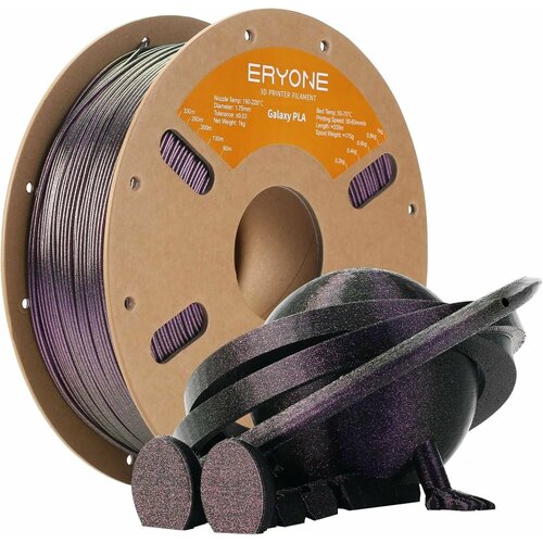 Филамент от компании Eryone - это качественный и надежный материал для 3D-печати. Глиттер добавленный в материал придает визуальный эффект мерцания пластика. По сравнению с обычно используемым мелкодисперсным порошком, глиттер имеет более тонкую и гладкую текстуру, более мелкие частицы, более равномерное распределение и более низкую степень засорения. Филамент совместим с 99% широко используемых FDM 3D-принтеров.