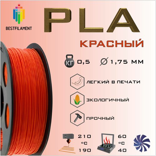 PLA (полилактид) - биоразлагаемый и биосовместимый 3D-пластик, получаемый из сырья растительного происхождения. В отличии от ABS он не требует специальных условий, нет необходимости в подогреваемом столе или термостабилизационной камере.\n\n\n\n\n\n\n\nНапечатанные из PLA крупные объекты практически не деформируются и не трескаются. Отлично подходит для печати крупногабаритных изделий, а также деталей, для которых важно точно передать геометрические размеры. Идеально подходит для печати предметов интерьера, требующих тщательной детализации.\n\n\n\n\n\n\n\nПо сравнению с ABS пластик PLA более твердый и жесткий, но также и более хрупкий. Если деталь, которую вы печатаете, часто будет подвергаться физическим воздействиям, PLA может быть не лучшим выбором. В таком случае обратите внимание на ударопрочный пластик: ABS, PETG, HIPS , BFNylon.\n\n\n\n\n\n\n\nPLA - самый экологичный пластик. Он не имеет неприятного запаха, что позволяет без проблем печатать им в условиях дома или офиса.\n\n\n\n\n\n\n\nТехнические характеристики:\n\n\n\n\n\n\n\nТвердость: 7,5/10\n\n\n\nДолговечность: 4/10\n\n\n\nПлотность — 1,23-1,25 г/см³\n\n\n\nВлагопоглощение — 0,2-0,4%\n\n\n\nТемпература плавления: 155-170°С\n\n\n\nНаличие запаха: Сладковатый запах жженого сахара\n\n\n\nОсобенности: Экологически чистый, биоразлагаемый, хрупкий, подвержен воздействию высоких температур\n\n\n\n\n\n\n\nПреимущества PLA Bestfilament:\n\n\n\nШирокая цветовая палитра\n\nМинимальная усадка при печати\n\nМожно печатать на чистом стекле\n\nНет необходимости в нагретой платформе\n\nЭкономия энергозатрат благодаря низкой температуре размягчения\n\nОтклонение диаметра прутка в пределах одной катушки не более 0,02 мм\n\n\n\n\n\nРекомендованные параметры печати для PLA Bestfilament:\n\n\n\n\n\n\n\nЭкструдер: 190-230°С\n\n\n\nПлатформа: 0/40-60°С\n\n\n\nСкорость печати: 40-60 мм/с\n\n\n\nОбдув: Да\n\n\n\nРетракт: Да\n\n\n\nУсадка при печати: Незначительная\n\n\n\nРастворители: Дихлорметан, Дихлорэтан\n\n\n\nТемпература эксплуатации: от -20°С до +40°С\n\n\n\nСоветы от Bestfilament:\n\n\n\nТемпература размягчения PLA-пластика около 50 градусов, поэтому при недостаточном охлаждении термобарьера возможно размягчение пластика и образование пробки. Чтобы этого избежать, обеспечьте максимальный обдув радиатора термобарьера.\n\nИспользуйте поролоновый фильтр с небольшим количеством масла (машинное или растительное) при печати PLA-пластиком для предотвращения образования пробки.\n\nPLA-пластик сохраняет пластичность в течение некоторого времени после остывания, что бывает удобно, например, для сборки составных моделей. Немного нагрейте детали перед сборкой, чтобы их легче было соединить.