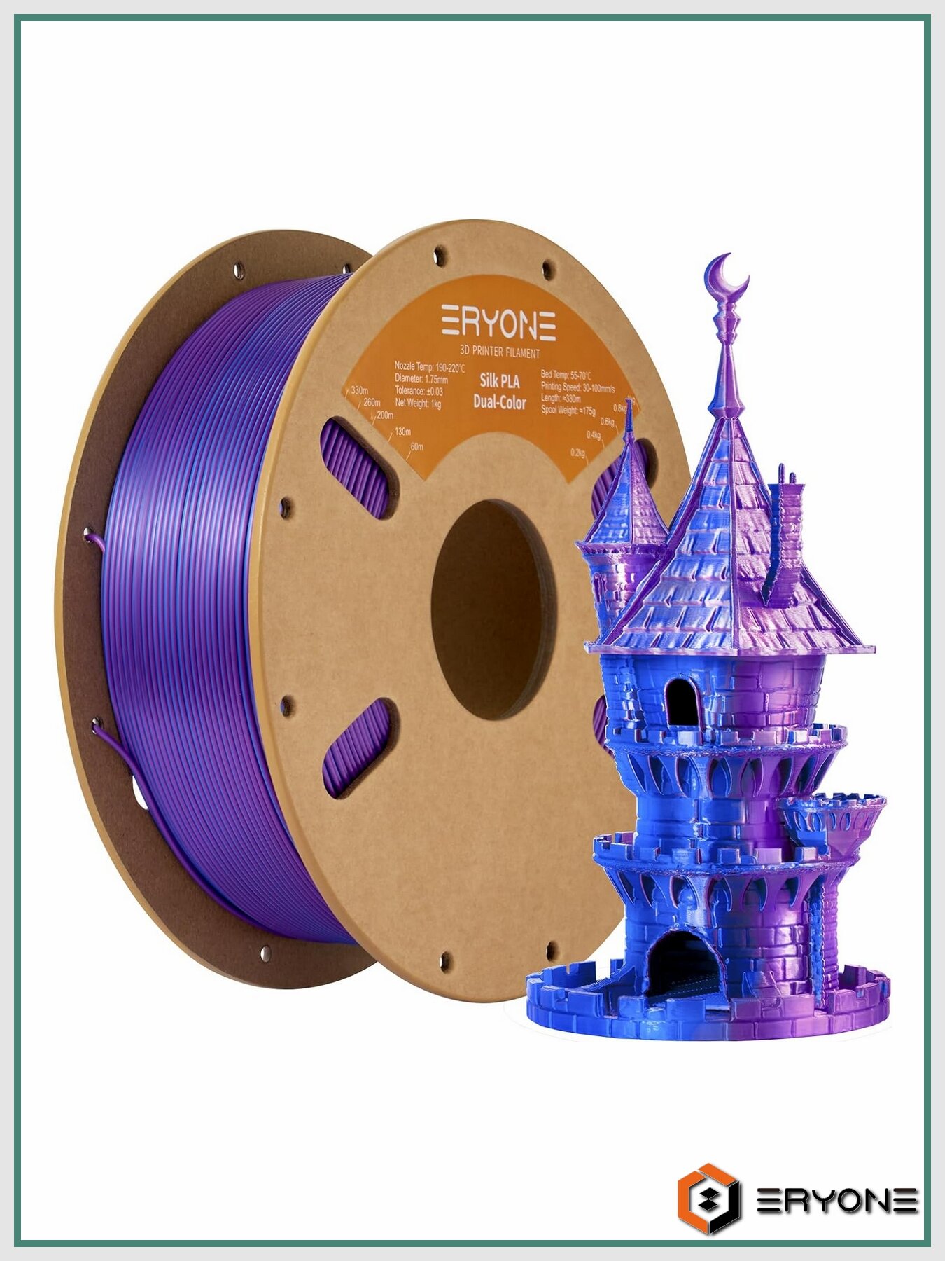 PLA пластик для 3D принтера Silk Dual-Color 1,75 мм 1 кг (Eryone) Фиолетовый — Синий: сравнение цен, характеристики, фото, актуальное наличие и цены.