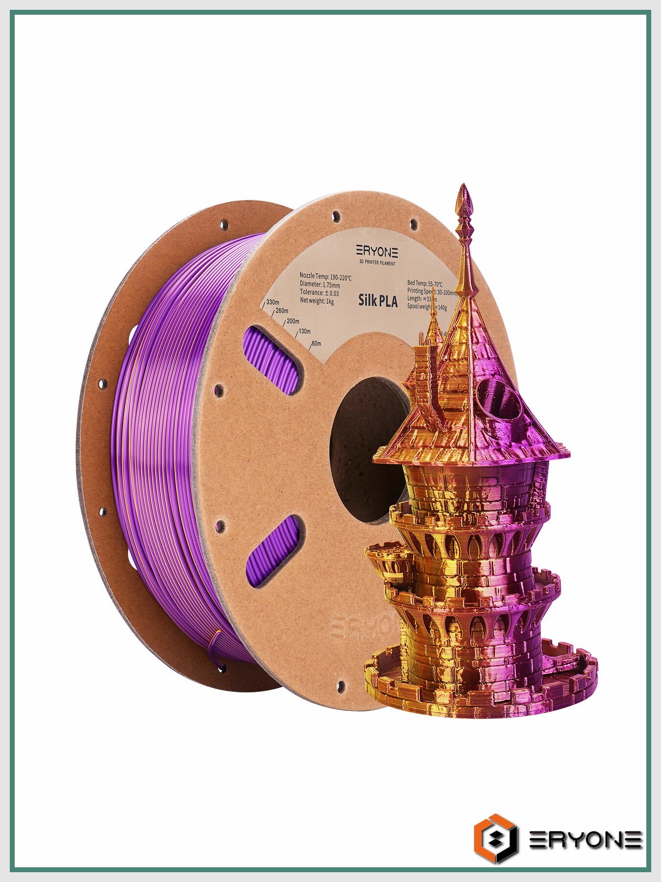 PLA пластик для 3D принтера Silk Dual-Color 1,75 мм 1 кг (Eryone) Золотой — Фиолетовый: сравнение цен, характеристики, фото, актуальное наличие и цены.