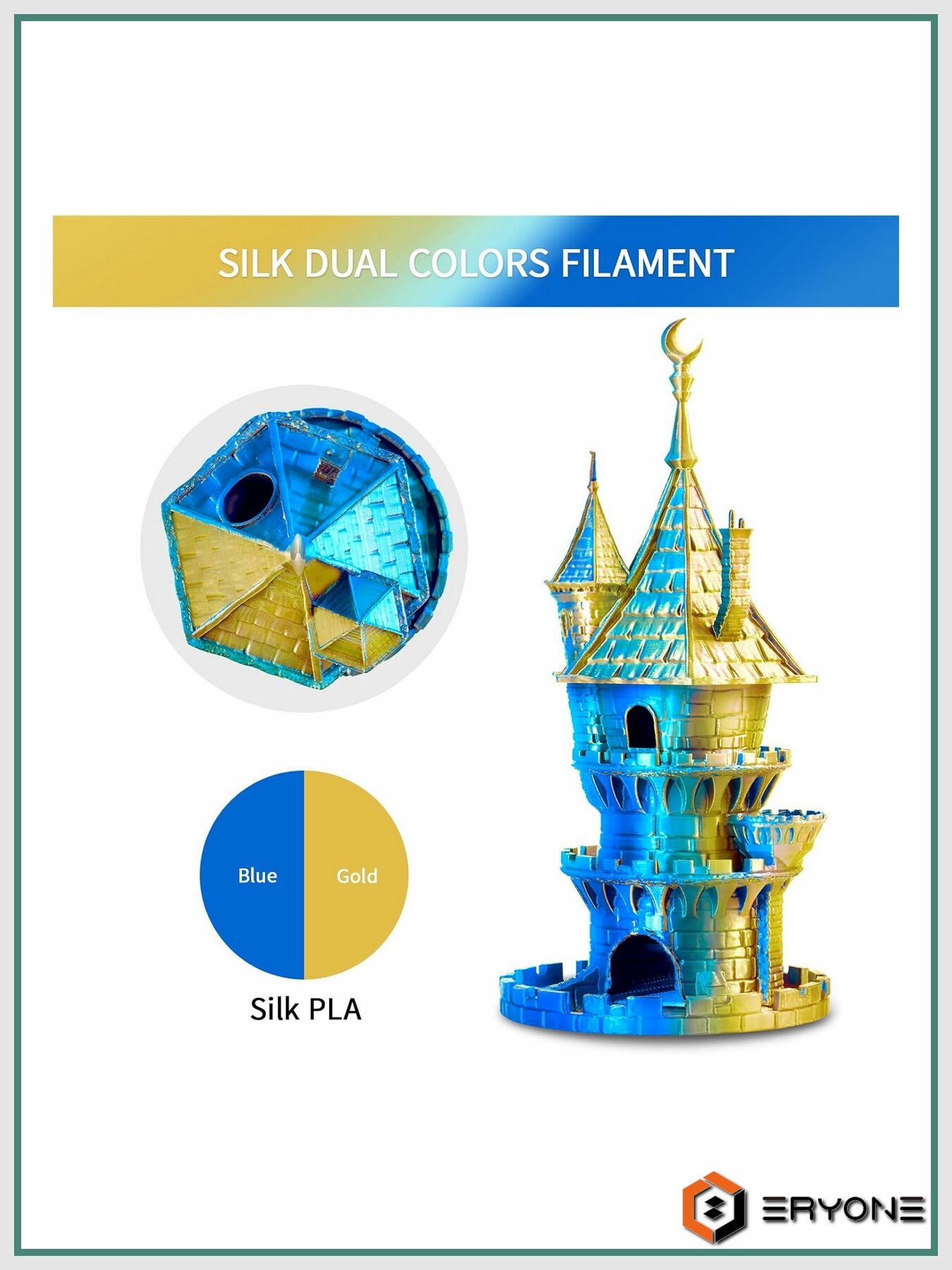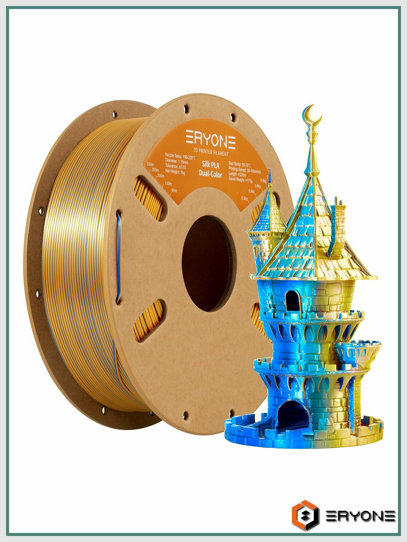 PLA пластик для 3D принтера Silk Dual-Color 1,75 мм 1 кг (Eryone) Золотой — Синий: сравнение цен, характеристики, фото, актуальное наличие и цены.