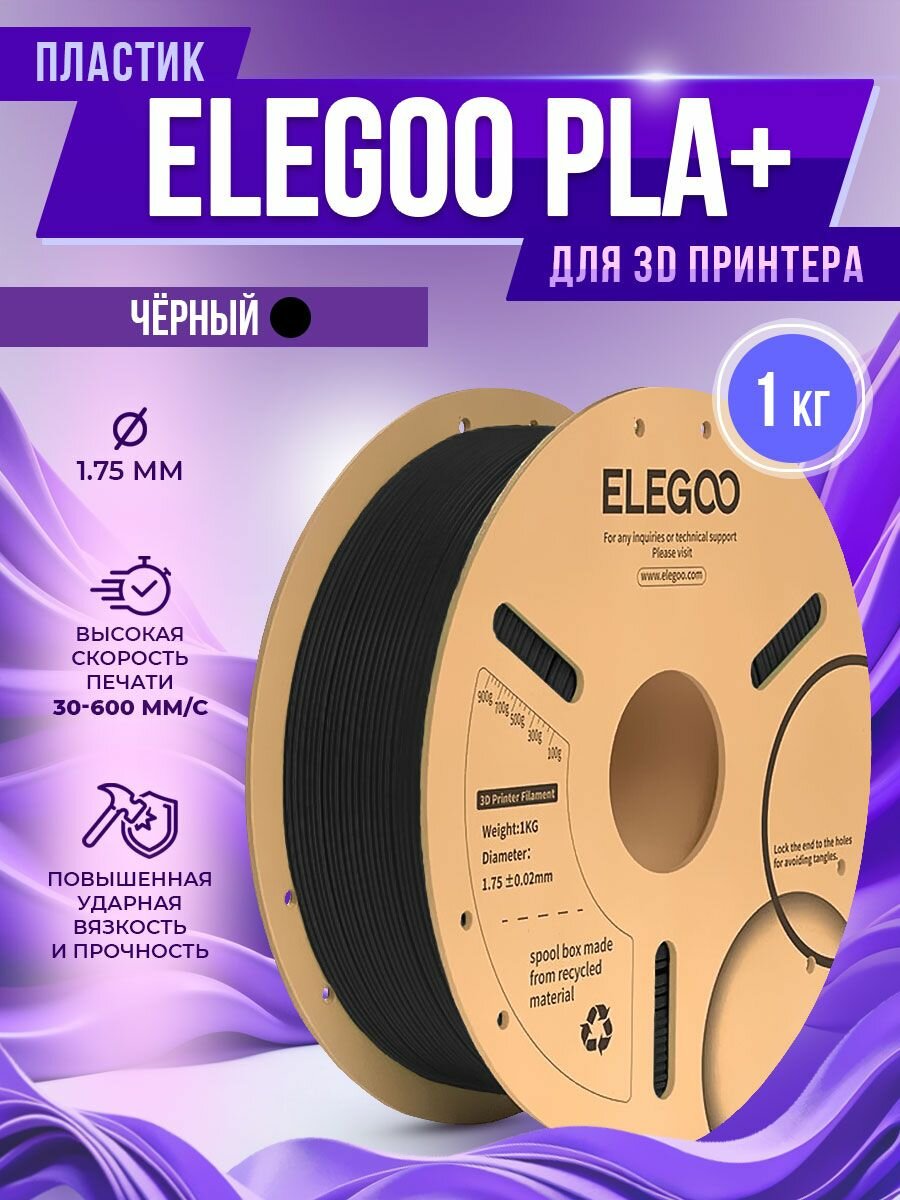 Купить PLA+ пластик Elegoo для 3D принтера 1.75 мм, Чёрный, 1 кг с доставкой по всей России. PLA+ пластик Elegoo для 3D принтера 1.75 мм, Чёрный, 1 кг: сравнение цен, характеристики, фото, актуальное наличие и цены.