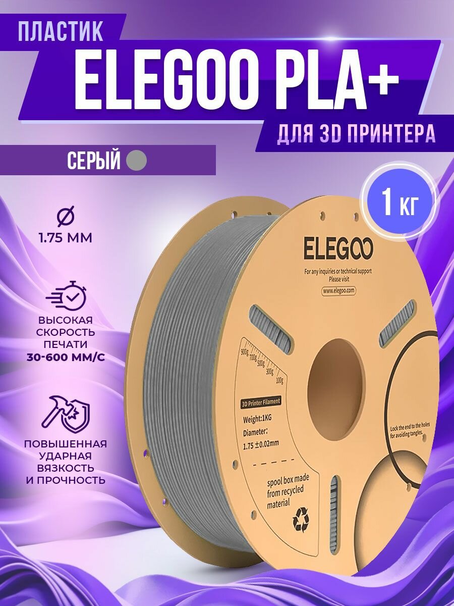 Купить PLA пластик Elegoo для 3D принтера, 1.75 мм, Серый, 1 кг с доставкой по всей России. PLA пластик Elegoo для 3D принтера, 1.75 мм, Серый, 1 кг: сравнение цен, характеристики, фото, актуальное наличие и цены.