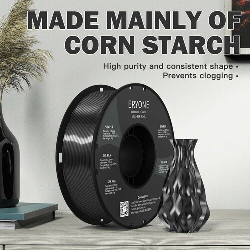 В целом, PLA Ultra Silk пластик Eryone Ultra Silk Чёрный 1,75 мм 1 кг - это качественный и надежный расходный материал для 3D-принтеров, который обеспечит высокое качество печати и долговечность изделий.