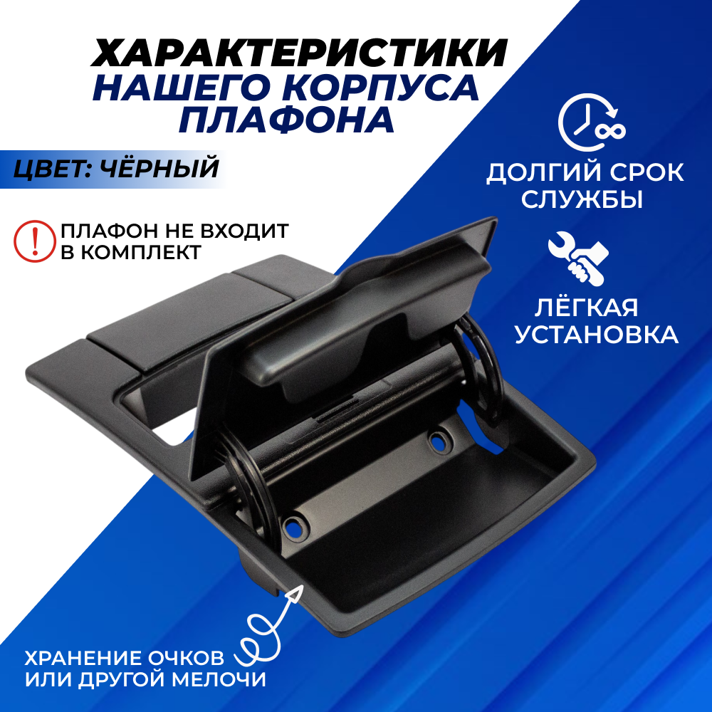 Цена указана за Плафон с очечником Приора элемент освещения салона передний, корпус черный с контейнером для очков на Приору 1-2. Плафон с лампами в комплект не входит.