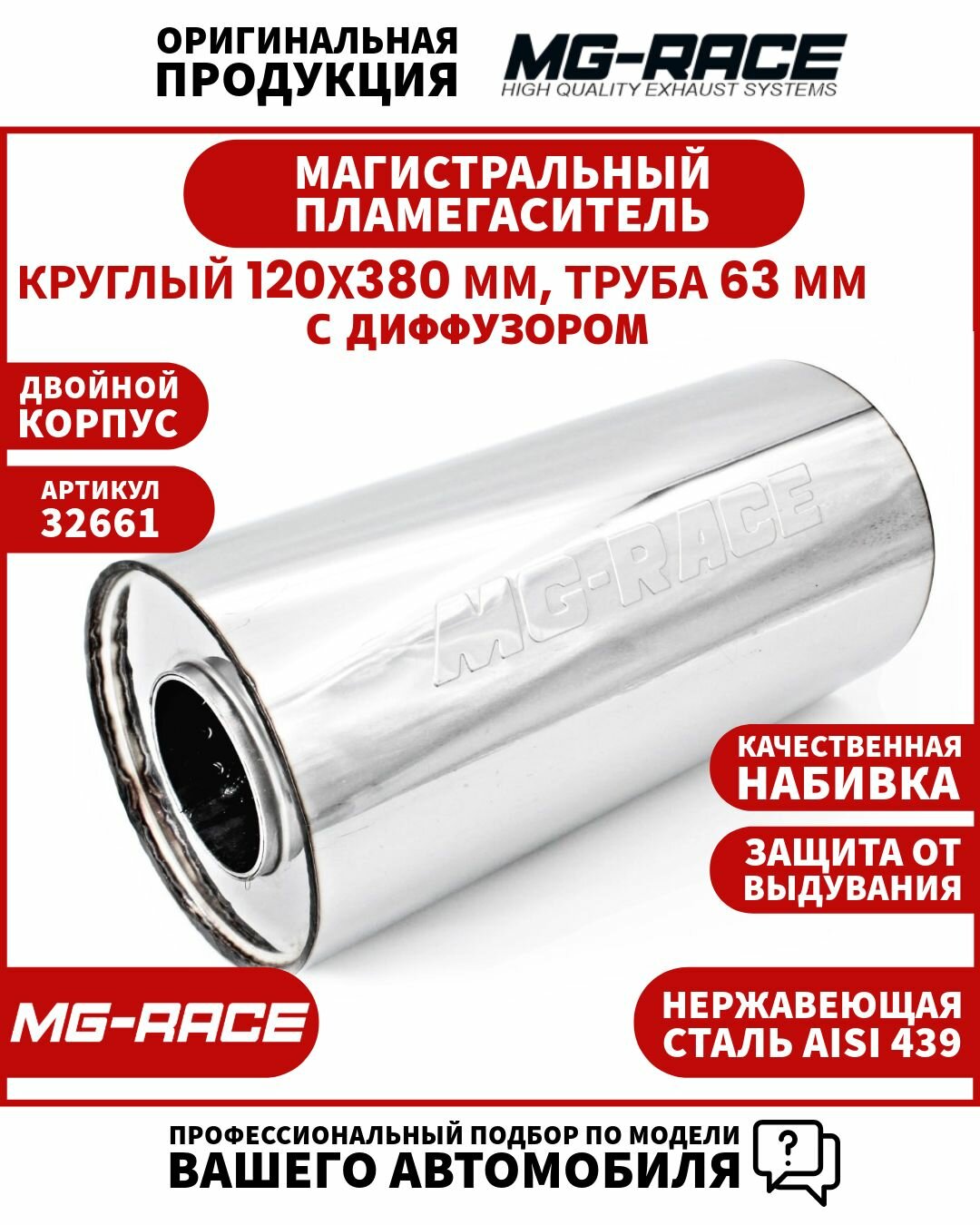 Пламегаситель MG-Race универсальный магистральный арт.32661 , 120 х 380 мм, труба Ф 63 мм , С диффузором: сравнение цен, характеристики, фото, актуальное наличие и цены.