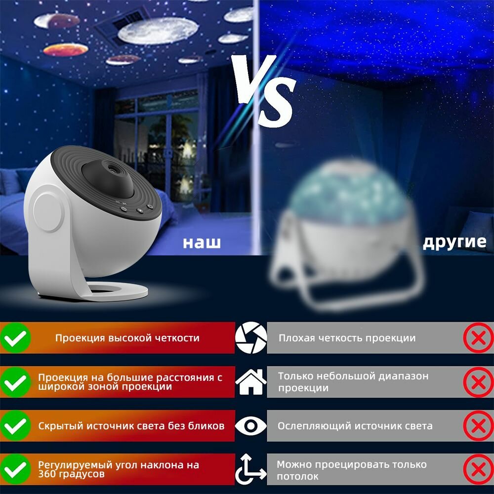 Планетарий-проектор, со светодиодным звездным проектором Night Light, 4K Сменные 13 дисков HD Galaxy, вращение на 360 , синхронизация, бесшумный дизайн: сравнение цен, характеристики, фото, актуальное наличие и цены.