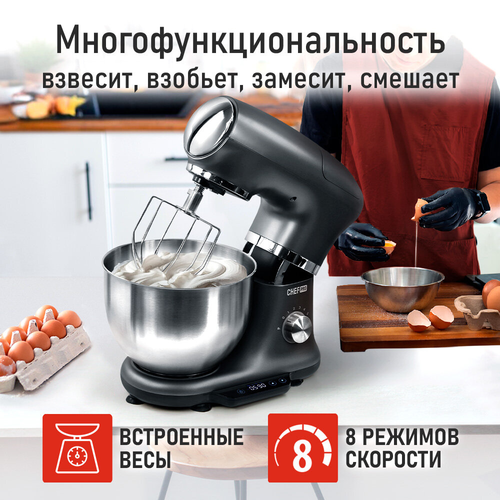 Купить Планетарный миксер Chef Pro CF-MX1309A, 8 скоростей, таймер, нержавеющая сталь с доставкой по всей России.