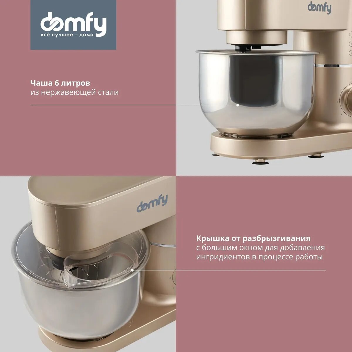 Планетарный миксер Domfy «Golden» DSC-KM301, 1200Вт, нержавеющая сталь, 6 скоростей, 6л: сравнение цен, характеристики, фото, актуальное наличие и цены.