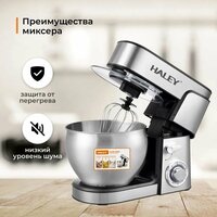 Купить Планетарный миксер HALEY-2404 Стационарный с чашей из нержавеющей стали 7л, с 3 насадками, 6 режимов скорости, 2200Вт с доставкой по всей России.