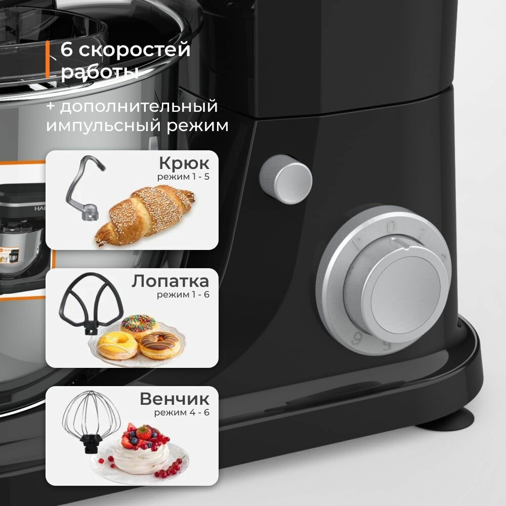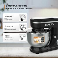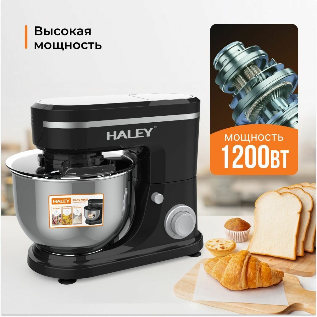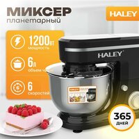 Планетарный миксер HALEY-2405 Стационарный для теста кондитерский с чашей из нержавеющей стали 6 л, Тестомес с 3 насадками, 6 режимов скорости, 2000Вт, импульсный режим, черный: сравнение цен, характеристики, фото, актуальное наличие и цены.