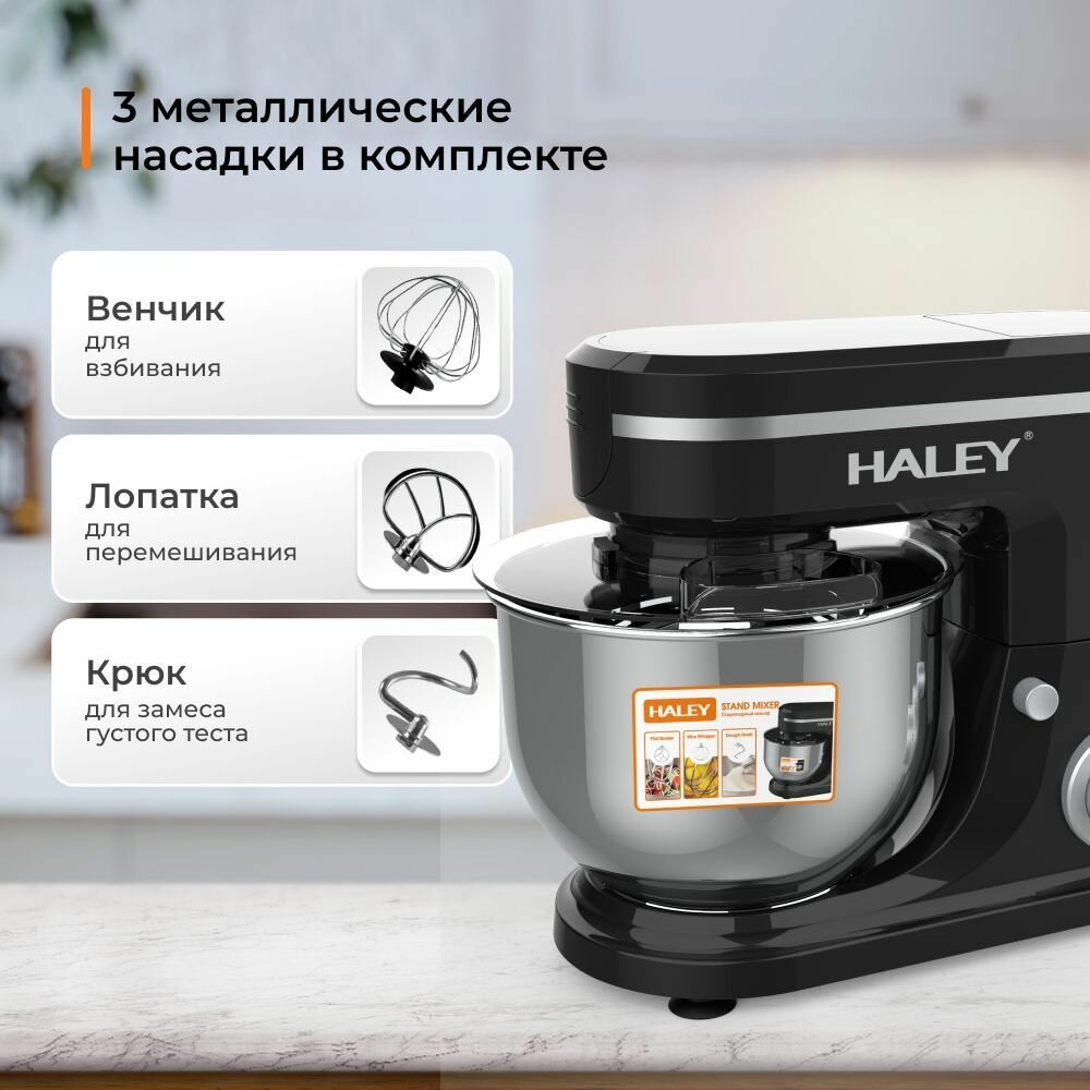 Купить Планетарный миксер HALEY-2405 Стационарный для теста кондитерский с чашей из нержавеющей стали 6 л, Тестомес с 3 насадками, 6 режимов скорости, 2000Вт, импульсный режим, черный с доставкой по всей России.