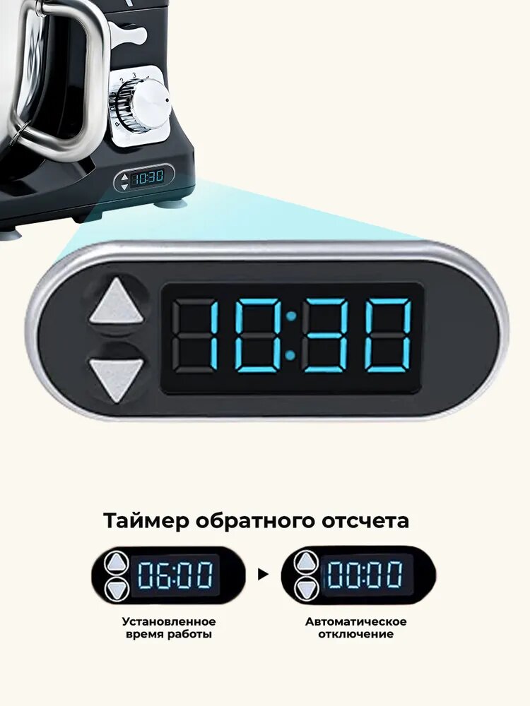 Для удобства эксплуатации планетарный миксер OBERHOF Breth C-36 Timer оснащен LED дисплеем с таймером прямого и обратного отсчета. Таймер прямого отсчета позволяет засечь время, которое требуется для взбивания, смешивания или замешивания ингредиентов, а в следующий раз позволяет сразу выставить это время на таймере обратного отсчета. Максимальное время установки таймера обратного отсчета составляет 20 минут. По истечении заданного времени миксер выключится автоматически.