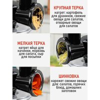 Овощерезка с мелкой и средней терками и шинковкой за пару минут подготавливает ингредиенты для домашней консервации, горячих блюд, заморозки, салатов и закусок.