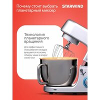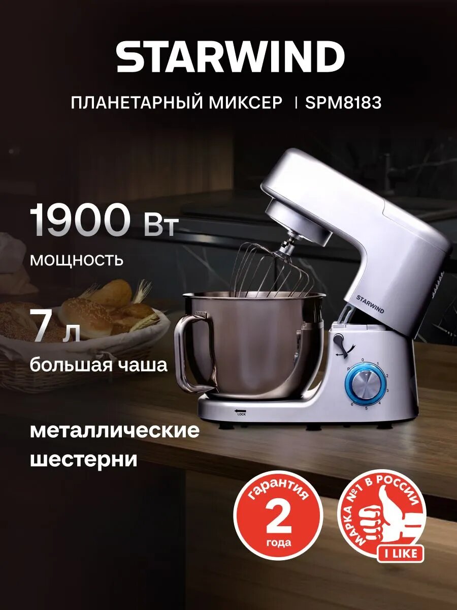Планетарный миксер с чашей SPM8183 серебристый, Цельнометаллические шестерни и насадки, Мощность 1900 Вт и 2 года гарантии, Защита от перегрева и перегрузки, Металлическая чаша 7 л: сравнение цен, характеристики, фото, актуальное наличие и цены.