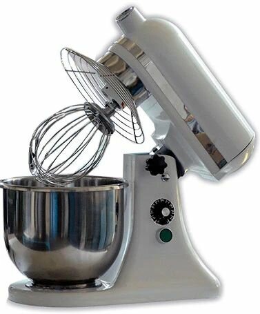 Миксер планетарный Торгмаш Барановичи МП-5, миксер с чашей, тестомесильная машина бытовая, стационарный миксер, тестомешалка, тестомесОписаниеМиксер планетарный с чашей МП-5 предназначен для замеса теста различной консистенции, а также для взбивания кремов, муссов и перемешивания пюре, соусов и паштетов на предприятиях общественного питания, торговли, в пекарнях и кондитерских.- Стационарный миксер снабжен тремя быстросменными инструментами: венчиком, лопаткой и крючком, которые позволяют взбивать, смешивать, замешивать любой продукт питания.- Автоматический регулятор скорости, установленный в миксере для теста, позволяет устанавливать необходимые частоты вращения инструмента к различным типам замешивания.- Детали тестомеса, контактирующие с пищевыми продуктами, выполнены из нержавеющей стали. Одновременная загрузка ингредиентов в тестомесильную машину: - при замесе теста, кг: 0.5 - при взбивании сливок, кг: 1.3 - при взбивании яиц, шт: 12Основные характеристики миксера с чашей для теста: Установка- настольныйОбъем дежи -5 лМеханизм поднятия головы - подъемная траверсаЧисло скоростей - вариатор (плавная регулировка)Скорость вращения венчика -от 75 до 660 об/мин. Напряжение -220 ВМощность - 0.37 кВтШирина- 240 ммГлубина - 420 ммВысота - 420 ммВес (без упаковки) - 13.5 кгЦвет- серый, металлическийРод тока: переменный Частота тока, Гц: 50Комплектация: Венчик, крюк, лопатка