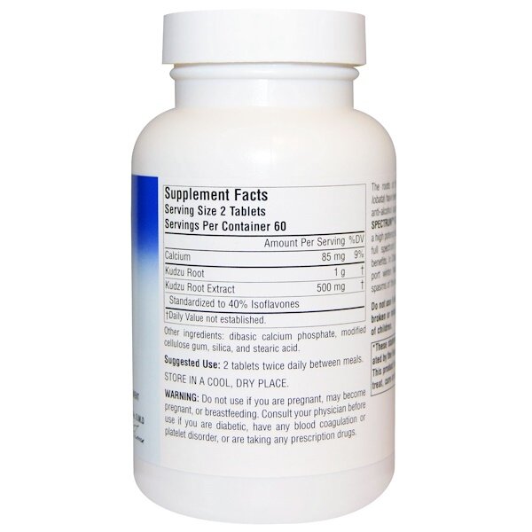 Помогает бороться с алкогольной зависимостью Растительная добавка Одобрено Майклом Тьерра, лицензированным иглотерапевтом, доктором восточной медицины Корни кудзу (Pueraria lobata) по традиции используются в Китае при борьбе с алкогольной зависимостью. Кудзу Full Spectrum от компании Planetary Herbals содержит корни и высокоэффективный стандартизированный экстракт для передачи полного спектра компонентов и преимуществ кудзу. В Китае кудзу используется для поддержки здоровья в зимнее время, а также помогает снимать напряженность и спазмы в шее и плечах. Рекомендации по Применению Принимать по 2 таблетки 2 раза в день между приемами пищи. Другие Ингредиенты Двухзамещенный фосфат кальция, модифицированная целлюлозная камедь, диоксид кремния и стеариновая кислота. Предупреждения Хранить в сухом и прохладном месте. Не следует применять во беременности (или ее планировании) и в период лактации. Перед началом применения лицами, страдающими от диабета, имеющими проблемы со свертываемостью крови или нарушения функции тромбоцитов, следует проконсультироваться с врачом. Не использовать, если защитная пленка повреждена или отсутствует. Хранить в недоступном для детей месте. Информация о добавке Размер порции: 2 таблетки Порций в упаковке: 60 Состав 1 порции % от суточной нормы Кальций 85 мг 9% Корень кудзу 1 г Экстракт корня кудзу, стандартизированный до 40% изофлавонов 500 мг Суточная норма не определена.