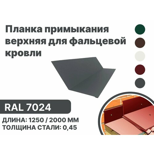 Купить Планка примыкания, верхнее к стене для фальцевой (клик фальцевой) кровли RAL-7024 1250мм 4шт с доставкой по всей России. Планка примыкания, верхнее к стене для фальцевой (клик фальцевой) кровли RAL-7024 1250мм 4шт: сравнение цен, характеристики, фото, актуальное наличие и цены.