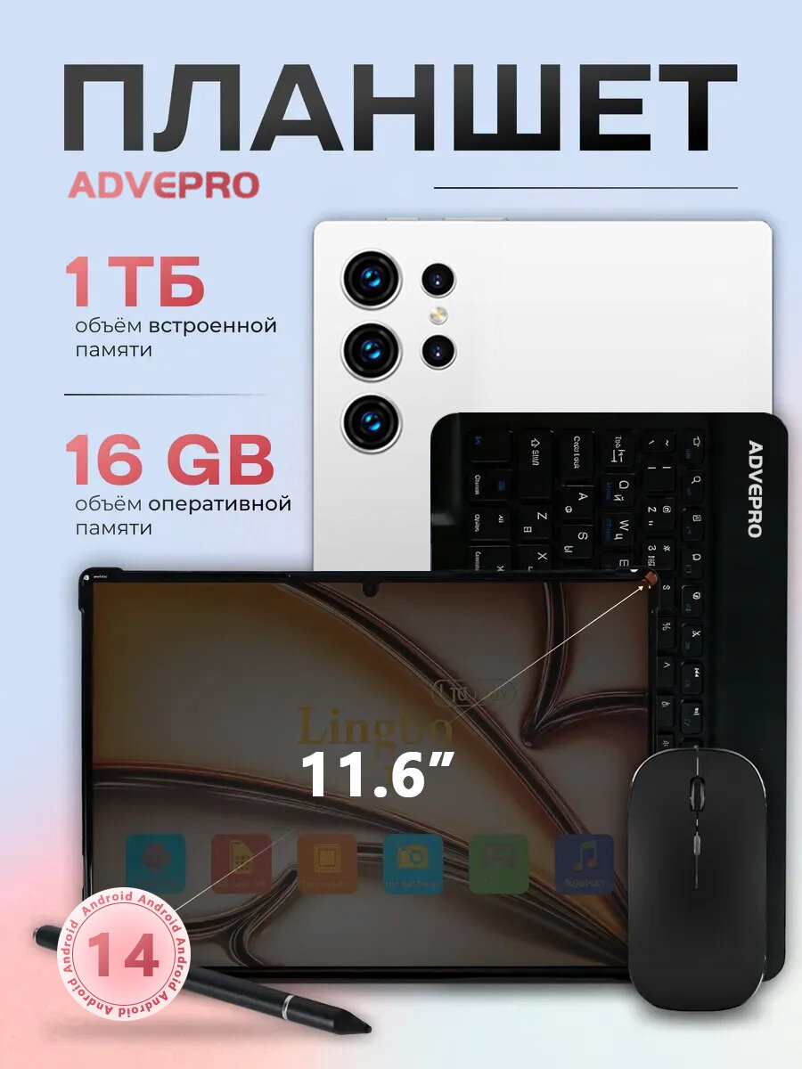 Планшет ADVEPRO S24 ULTRA, Android 14, IPS экран 4K, 16 ГБ/1ТБ, три камеры: сравнение цен, характеристики, фото, актуальное наличие и цены.