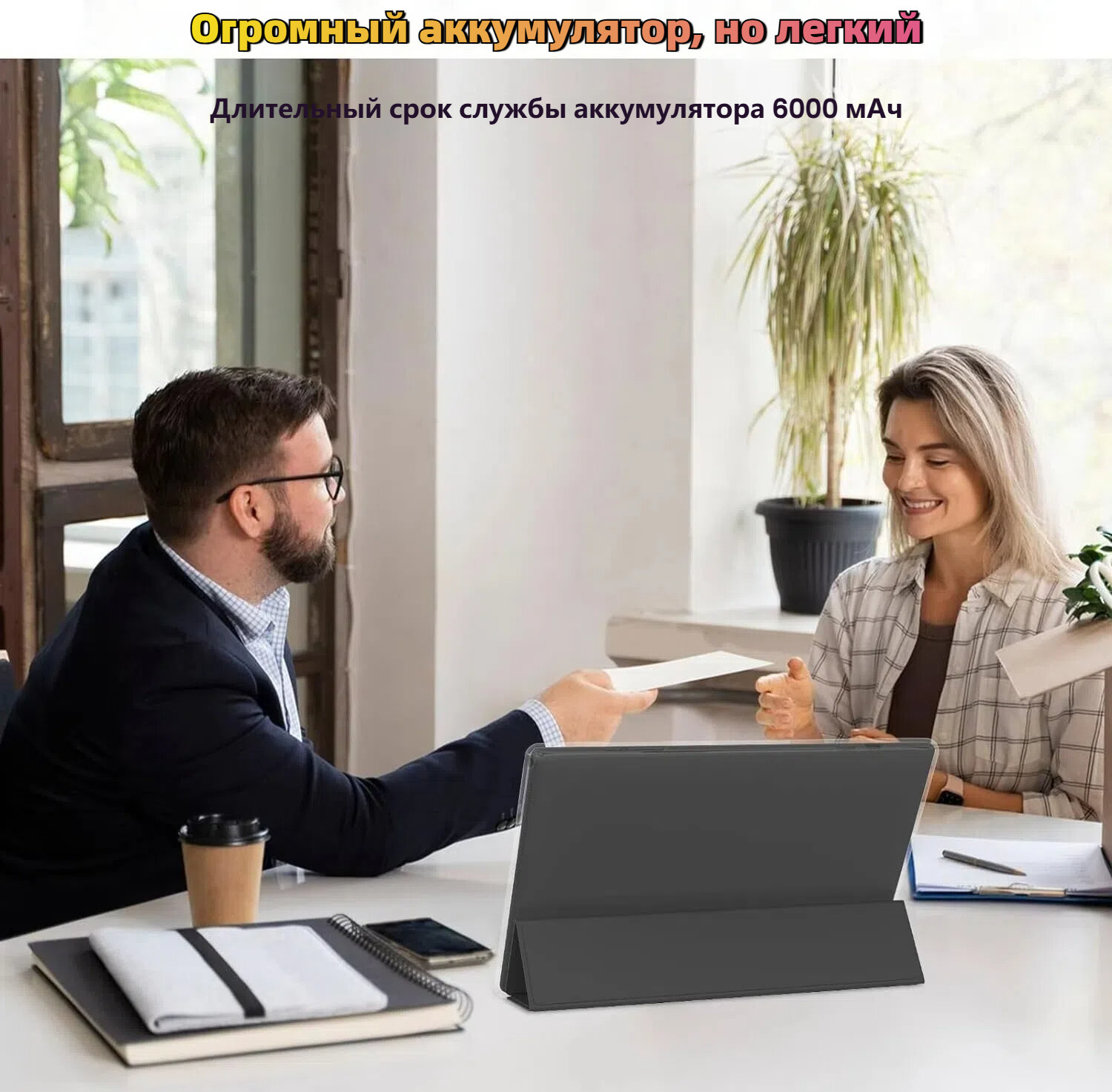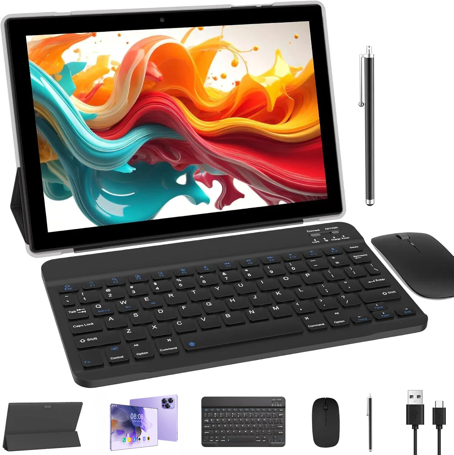 【Портативный планшет 2 в 1 с клавиатурой】 Планшет с экраном 10.1 дюйма, оснащенный Bluetooth клавиатурой, беспроводной мышью и складным защитным чехлом, позволяет легко преобразовать ваш планшет в устройство, напоминающее ноутбук. Такая универсальность делает его идеальным устройством для продуктивной работы в дороге, будь то работа, учеба или развлечение.