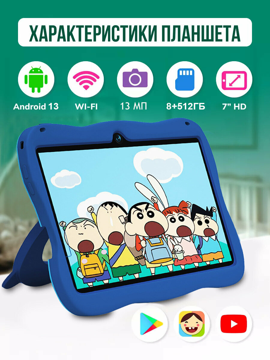 Планшет детский для мультиков и игр PAD7 8+512гб,8 ядра,5500 мАч, Синий: сравнение цен, характеристики, фото, актуальное наличие и цены.