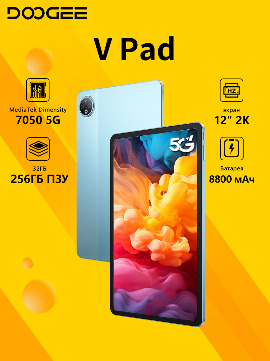 Купить Планшет DOOGEE V Pad 5G 32 ГБ / 256 ГБ, Dimensity 7050,12″ 2K Дисплей, WiFi6, Синий с доставкой по всей России.