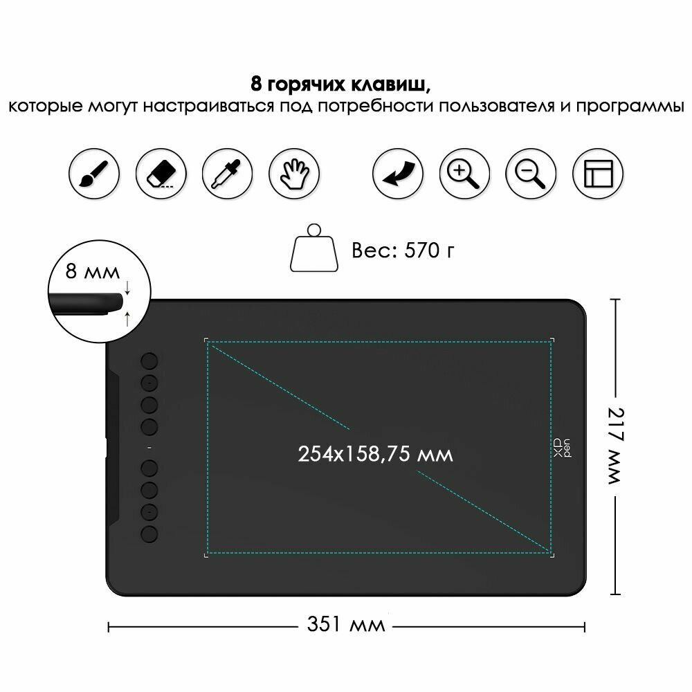 | Дополнительные функции | Горячие клавиши, Держатель для пера |