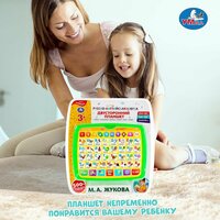 Двусторонний планшет азбука Жукова М. А. Умка HT1103-R3. Обучающий двусторонний планшет «М. А. Жукова. Русско-английская азбука» ТМ «УМка» станет прекрасным подарком для малыша:- две активные стороны- 500 слогов, звуков и песен. Игрушка-планшет – креативный и полезный подарок для развития и игры. Такой планшет поможет ребёнку быстро и эффективно выучить азбуку на русском и английском языках. Малыш с удовольствием будет нажимать на кнопки, слушать песни, играть и учиться. Обучающий планшет ТМ «УМка» способствует расширению кругозора и развивает:- звуковое восприятие и музыкальный слух- память- мелкую моторику- фантазию- речь. Работает от 3-х батареек типа АА.
