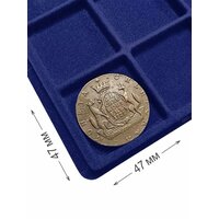 • размер: 334х220x20 мм • ячейка для монет до 47 мм • изготовлен из ПВХ • флокирование под бархат синего цвета • твердое дно • Leuchtturm - 324301