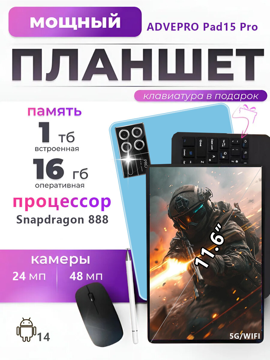Планшет Новинка 2025 года ультратонкий 11.6 дюймовый планшетный компьютер Pad15 Pro на базе Android 14 со сверхвысокой четкостью изображения, полноэкранный 5G-офис развлечения нетком: сравнение цен, характеристики, фото, актуальное наличие и цены.