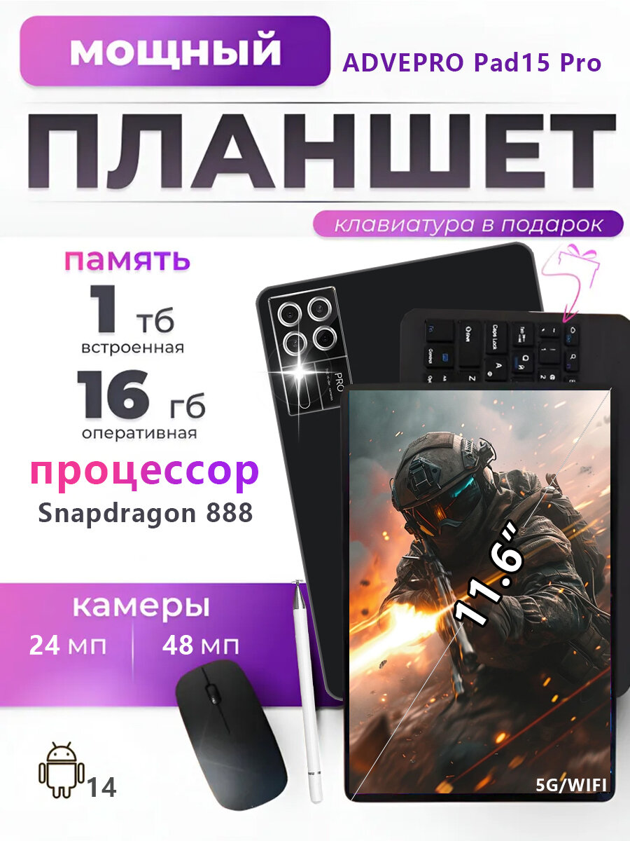 Планшет Новинка 2025 года ультратонкий 11.6 дюймовый планшетный компьютер Pad15 Pro на базе Android 14 со сверхвысокой четкостью изображения, полноэкранный 5G-офис развлечения нетком: сравнение цен, характеристики, фото, актуальное наличие и цены.