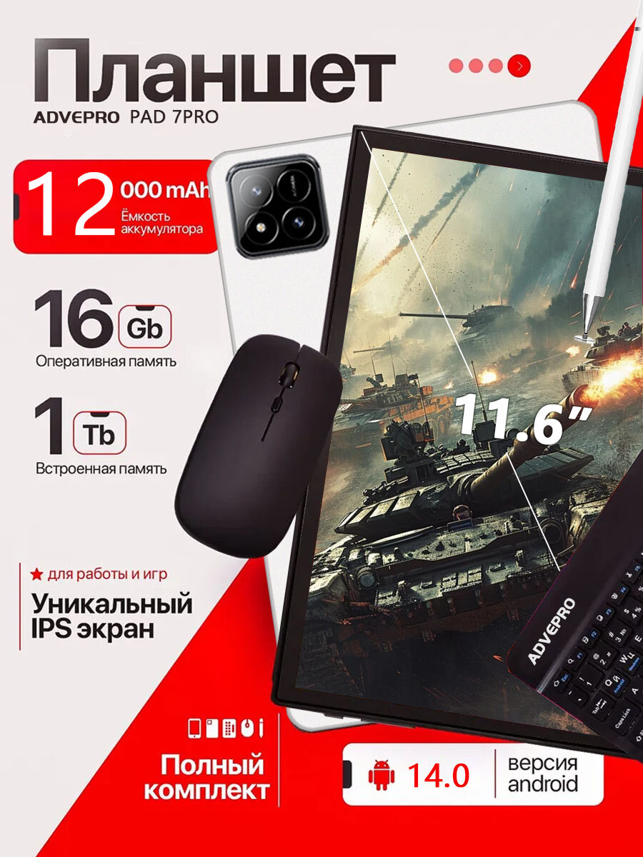 Планшет Новинка 2025 года ультратонкий 11.6 дюймовый планшетный компьютер Pad7 Pro на базе Android 14 со сверхвысокой четкостью изображения, полноэкранный 5G-офис развлечения нетком: сравнение цен, характеристики, фото, актуальное наличие и цены.
