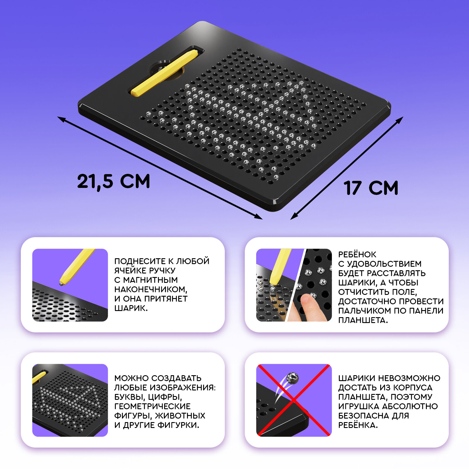 Купить Планшет обучающий «Магнитное рисование», средний, 380 шариков, 10 карточек, цвет чёрный с доставкой по всей России.
