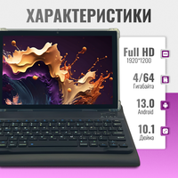 Планшет с клавиатурой 10.1 дюйма, планшет с 2 сим картами, 4 GB RAM, 64 GB ROM, Android 13, 1920×1200, bluetooth, wifi, LTE, русская клавиатура, серый: сравнение цен, характеристики, фото, актуальное наличие и цены.