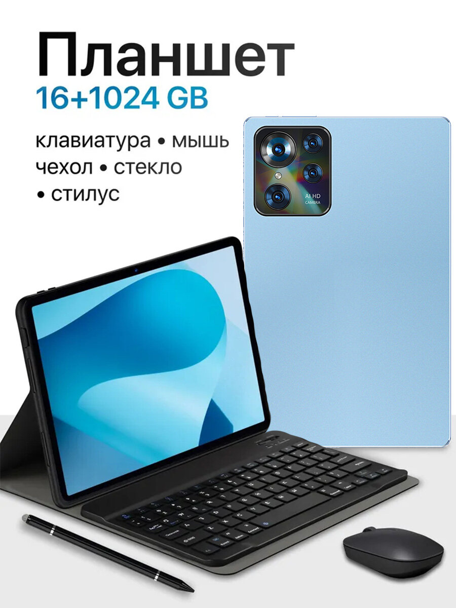 Планшет с клавиатурой 11.6 дюйма, планшет с сим картами, 16 GB RAM, 1024 GB ROM, Android 13, 3000×1440, bluetooth, wifi, LTE, русская клавиатура, синий: сравнение цен, характеристики, фото, актуальное наличие и цены.