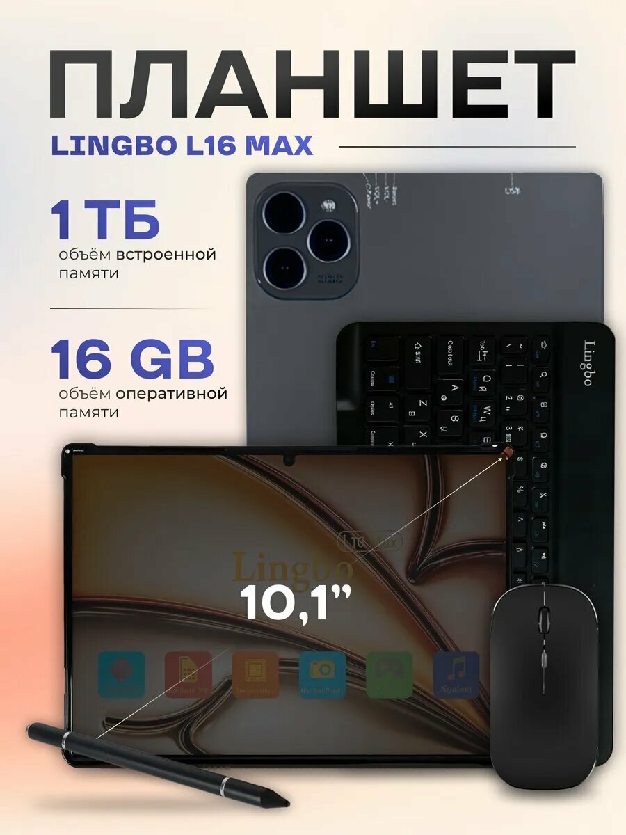 Купить Планшет с клавиатурой Лингбо L16 MAX, экран 10.1″, ОС Android 13, 10 часов работы с доставкой по всей России.