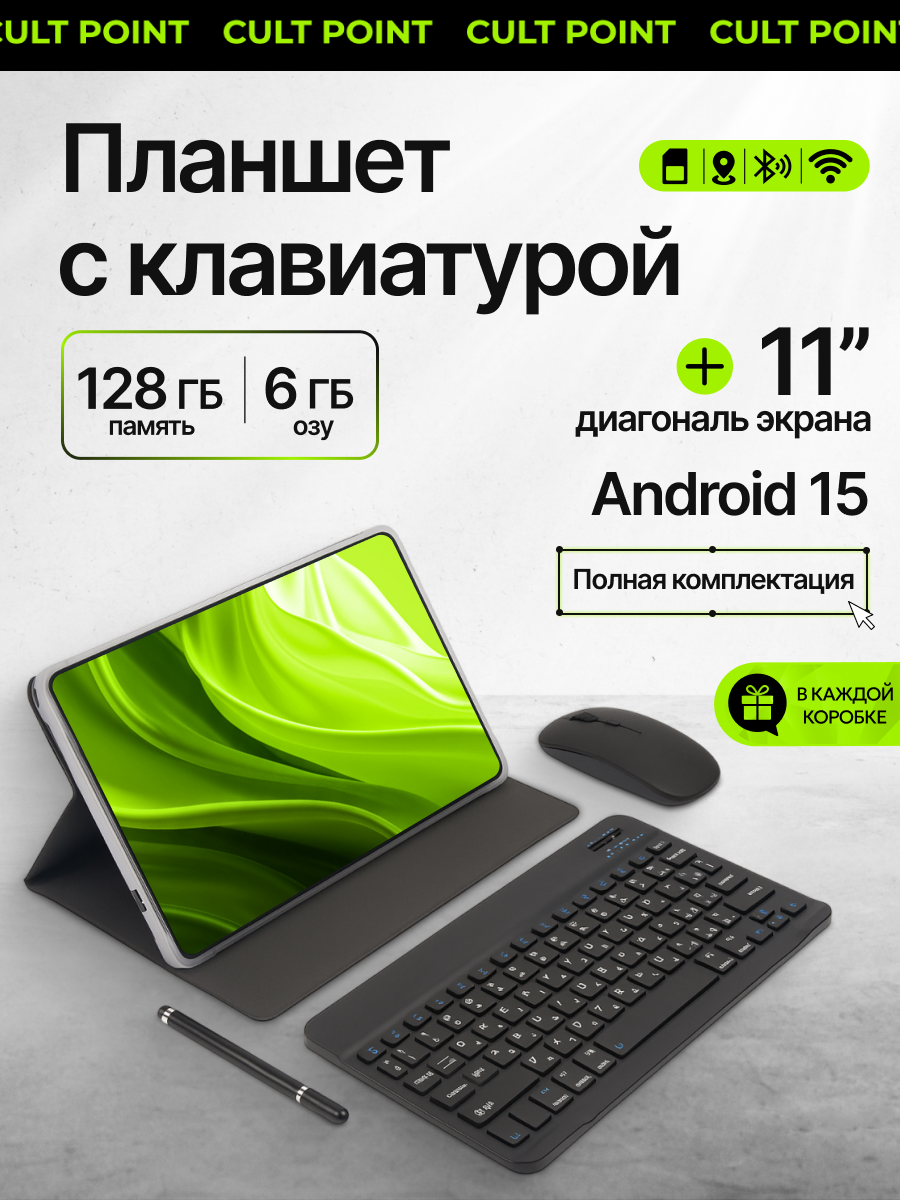 Купить Планшет с клавиатурой, стилусом, сим-картой, Wi-Fi, Android 15, экран 11″, Cult Point с доставкой по всей России.