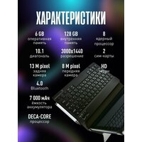 | Комплектация | Планшет, клавиатура на русском, защитное стекло, чехол, стилус, зарядное устройство, инструкция, упаковка. |