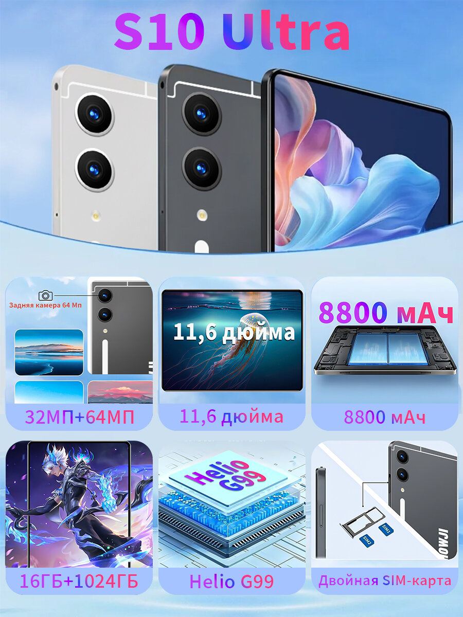 | Комплектация | Планшет*1, защитный чехол*1, русская клавиатура*1, стилус*1, наушники*1, кабель для передачи данных OTG*1, инструмент для извлечения SIM-карты*1, зарядное устройство*1 |
