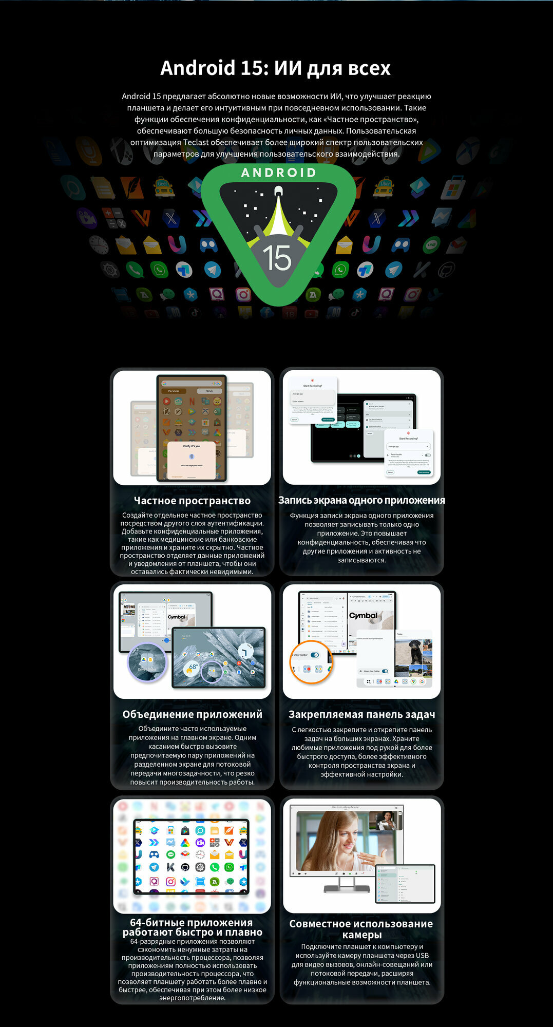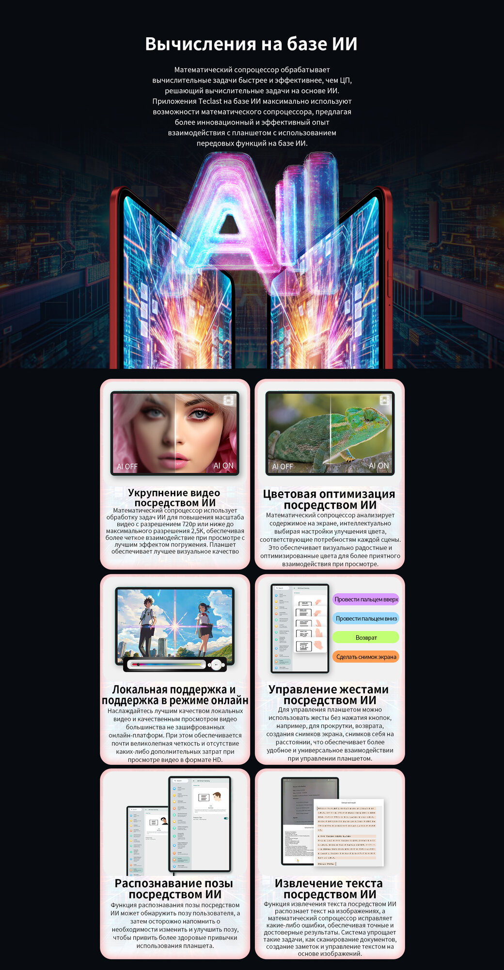 Teclast T60 (AI Edition) — это мощный и стильный 12-дюймовый планшет в ярком красном цвете. 6 ГБ оперативной памяти и 128 ГБ встроенной памяти обеспечивают плавную работу приложений и достаточно места для хранения ваших файлов. Модель с приставкой «AI Edition» подразумевает улучшенную оптимизацию и поддержку функций на базе искусственного интеллекта. Наслаждайтесь просмотром фильмов, играми и работой с документами на большом и ярком экране. Teclast T60 (AI Edition) — отличный выбор для тех, кто ищет производительный и стильный планшет для развлечений и повседневных задач. Доступ к сети только через Wi-Fi.