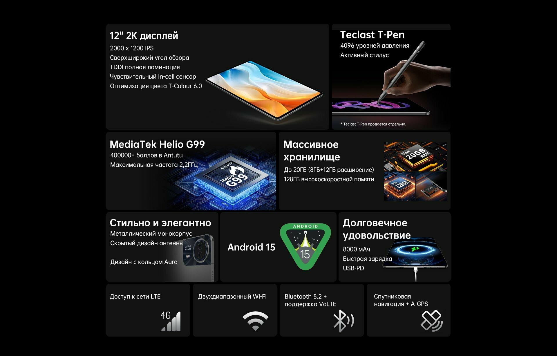Купить Планшет Teclast / T60Pro 12 — дюймовый Helio G99 8 ГБ + 128 ГБ Android 15 с доставкой по всей России. Планшет Teclast / T60Pro 12 — дюймовый Helio G99 8 ГБ + 128 ГБ Android 15: сравнение цен, характеристики, фото, актуальное наличие и цены.