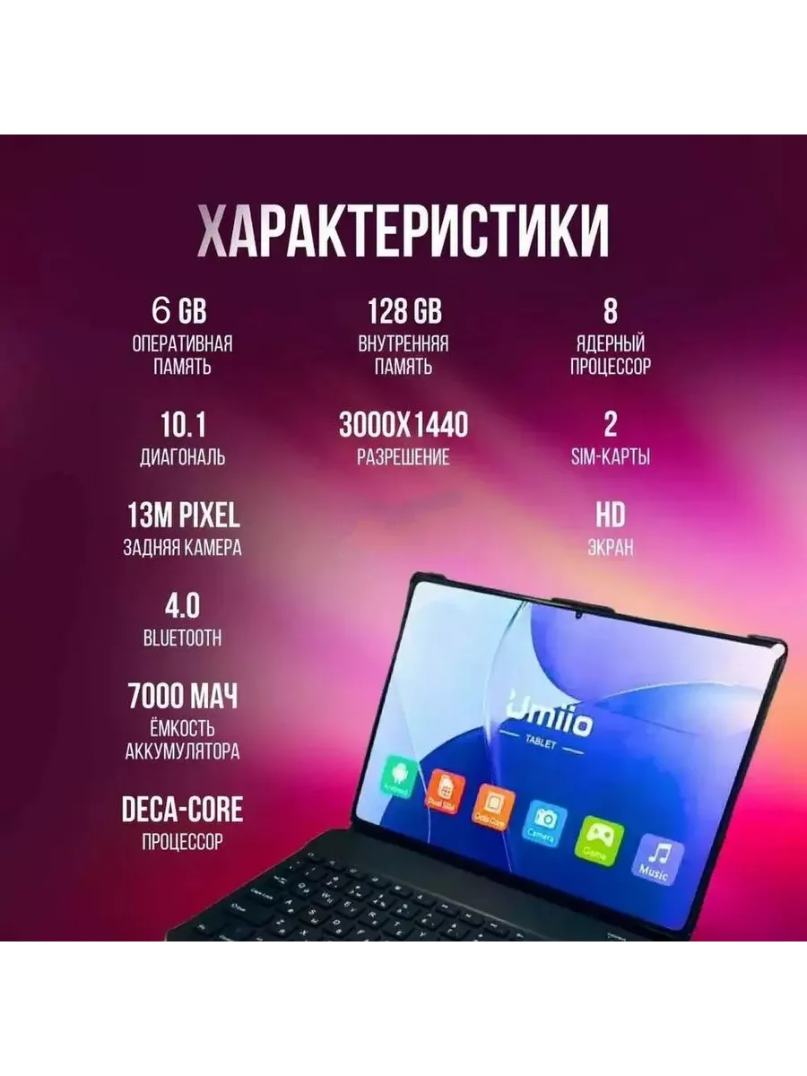 | Комплектация | Планшет, зарядное устройство, чехол, клавиатура, мышка, стилус |