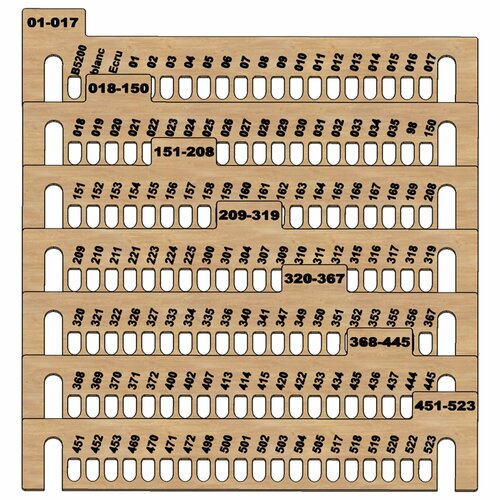 Каждая планшетка вмещает в себя 20 различных цветов мулине, что позволяет вам легко организовать и найти нужный цвет. В комплекте вы получаете 25 планшетки с гравировкой, что дает вам возможность самостоятельно определить количество и расположение цветов.