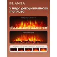2 вида декоративного топлива - белые камни и имитация дров, функция «Звук потрескивания дров», режим имитации пламени без обогрева