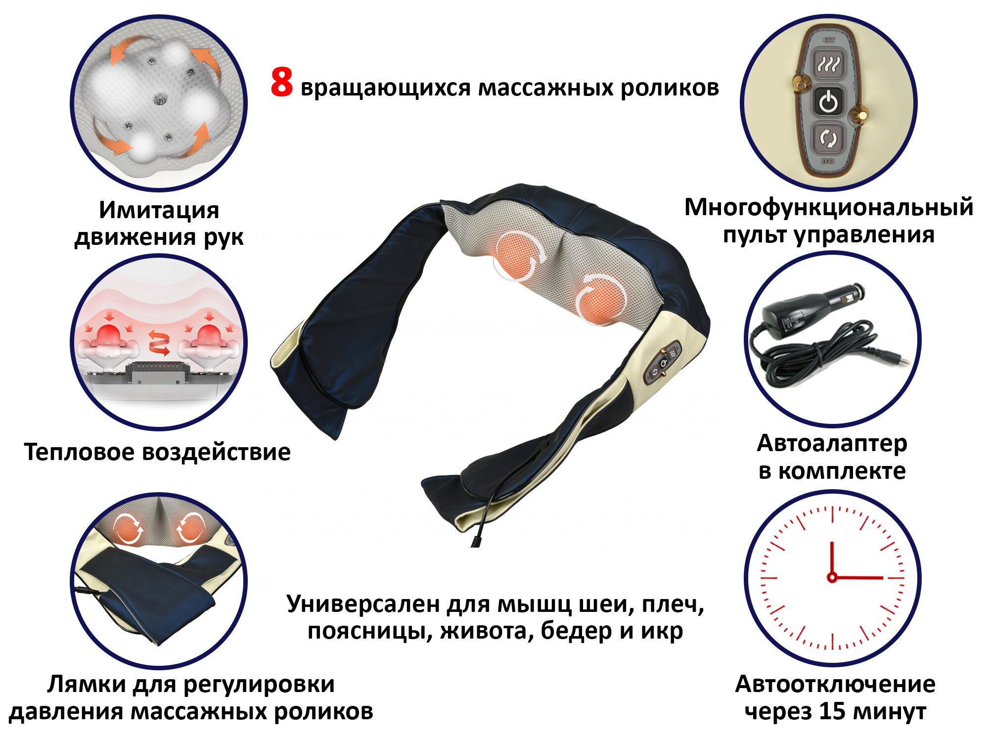 Купить PLANTA Массажер для шеи и плеч MSH-400 Tibet Master, разминающий массаж Шиацу, 8 роликов, подогрев, реверс, автоадаптер, таймер с доставкой по всей России.