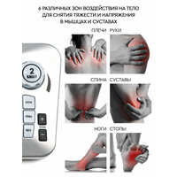 PLANTA Массажер — миостимулятор EMS-750, 8 электродов, пояс, наколенник и тапочки в комплекте, ЖК дисплей, установка времени массажа и функция энергосбережения, работает от сети или батареек