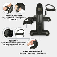 Мини-велотренажёр PLANTA FD-BIKE-004 – кардиотренажёр для тренировки ног и рук в домашних условиях. Разработанный для дома, он помогает укрепить мышцы и поддерживать себя в хорошей физической форме без необходимости «заставлять» себя заниматься спортом. Ведь всё, что нужно - это разместить велосипед рядом, когда Вы занимаетесь своими повседневными занятиями: работаете за компьютером, читаете или смотрите телевизор, и начать занятие. Теперь укреплять мышцы и поддерживать себя в хорошей физической форме, не выходя из дома - легко! Упражнения на педальном велотренажере используются для реабилитации и комплексного укрепления здоровья пожилых людей, восстановления после перенесённой травмы, для разработки мышц рук и ног у людей с нарушениями двигательной функции, подходят пациентам после перенесенных операций и инсультов. Тренажер помогает вернуть тонус мышцам. Информативный русифицированный дисплей портативного тренажёра отображает количество оборотов, израсходованные калории, расстояние и время тренировки. Благодаря регулятору нагрузки можно выбирать степень интенсивности тренировки. Тренажёр оснащён прорезиненными ножками-стабилизаторами, препятствующими скольжению и повреждению напольного покрытия. Эргономичная форма педалей разработана для комфортного использования как по время тренировок ног, так и рук. Фиксаторы педалей можно регулировать по высоте. Мини-велотренажёр имеет компактные размеры: 35 см X 42 см X 32 см. Максимальный вес нагрузки: до 120 кг. Регулярные занятия фитнесом на мини велотренажёре могут дать сходную нагрузку, которую Вы бы получили при тренировках на степпере, эллипсе или беговой дорожке.