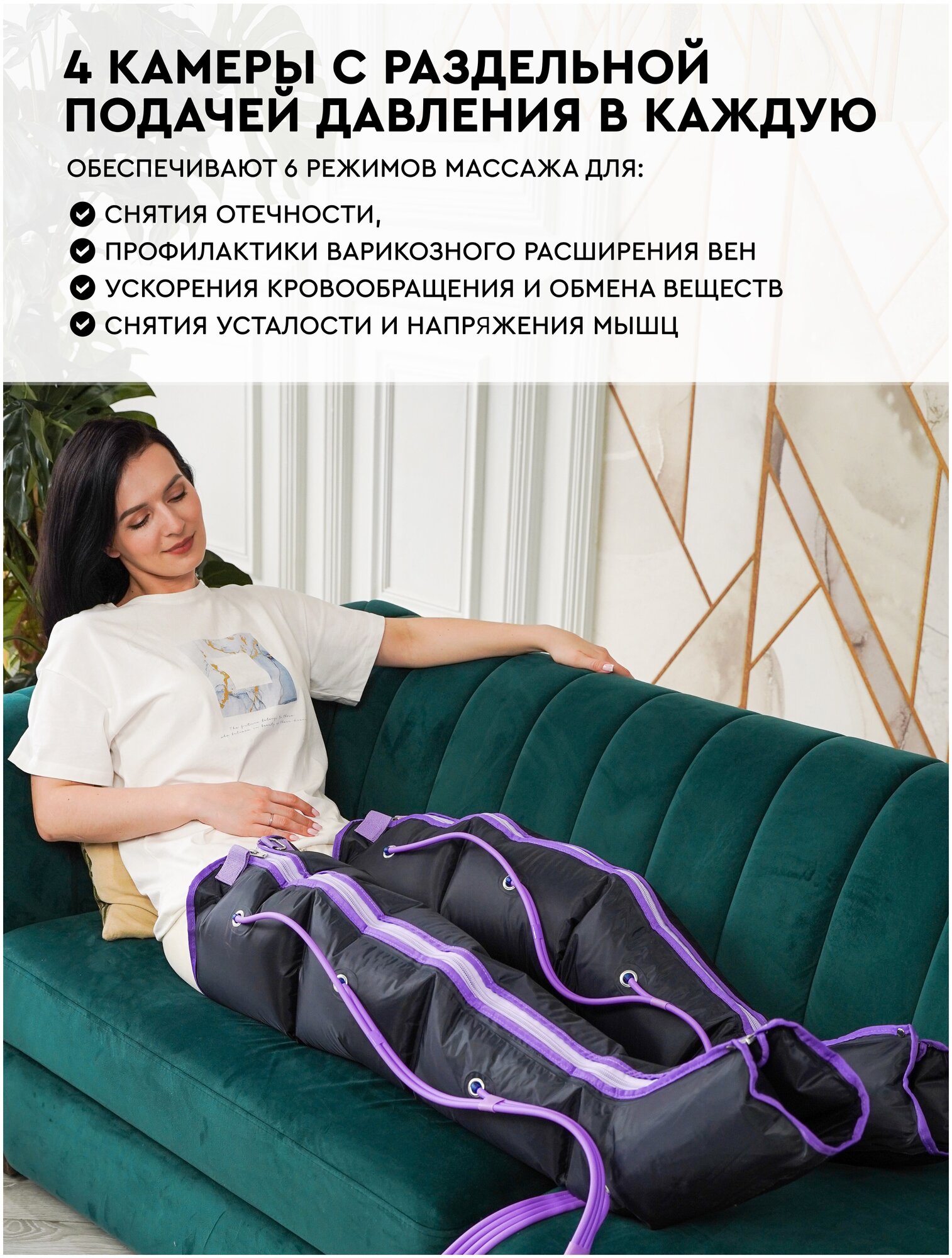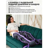 Преимущества Массажера: 6 режимов работы 4 воздушные камеры в каждой манжете Таймер отключения - 10/20/30 минут 9 режимов интенсивности